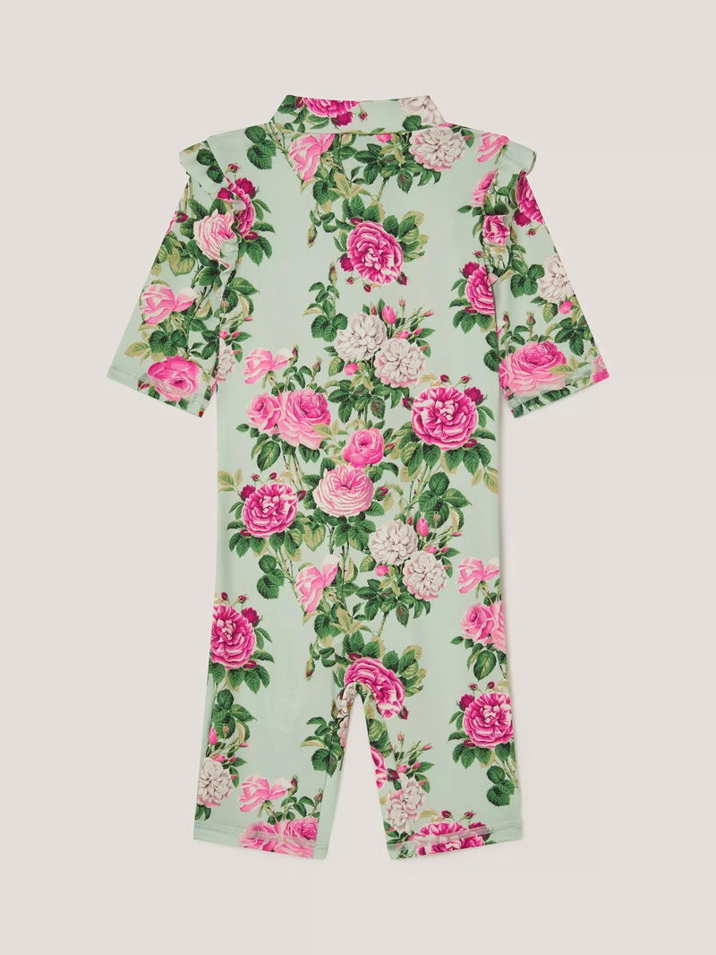 Baby UPF50+ Rose Print Swimsuit, Green