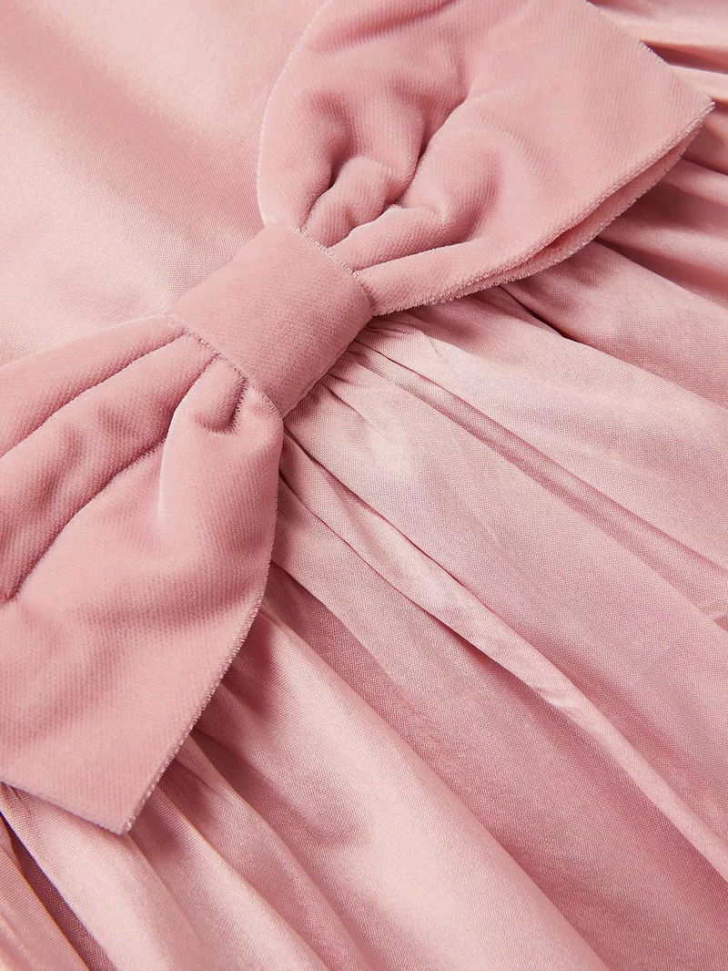 Baby Velvet Bow Bubble Hem Dress, Dusky Pink