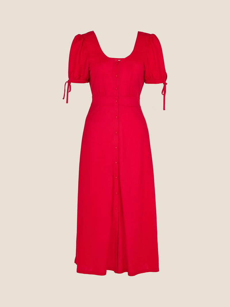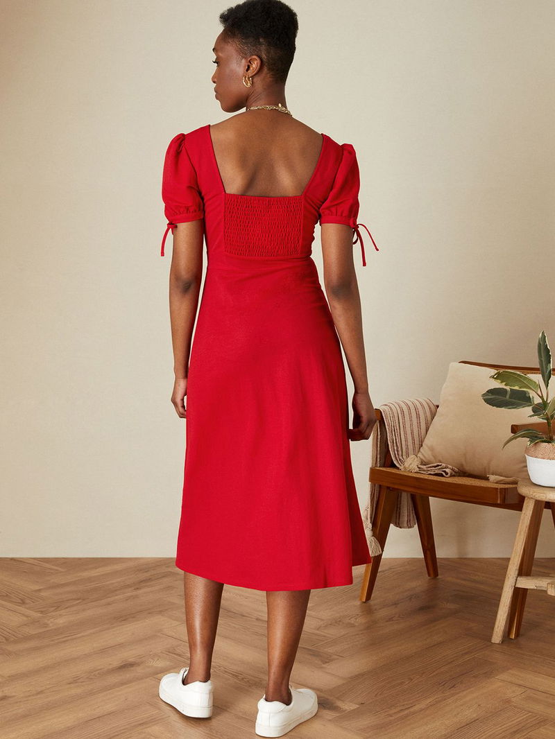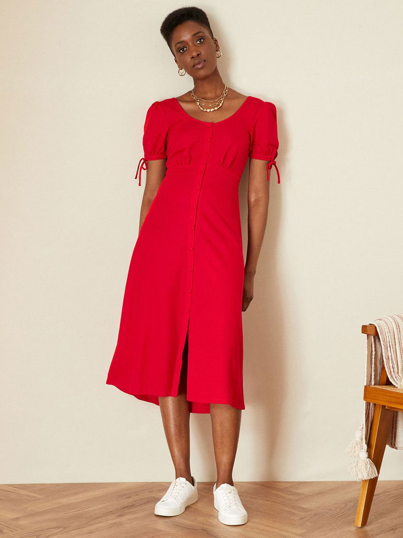 Flattering your silhouette with its empire waistline, this midi dress by Monsoon complements bold accessories with its plain canvas. Framed with a scoop neckline and short sleeves, this piece slips on with sandals for a day in the sun.