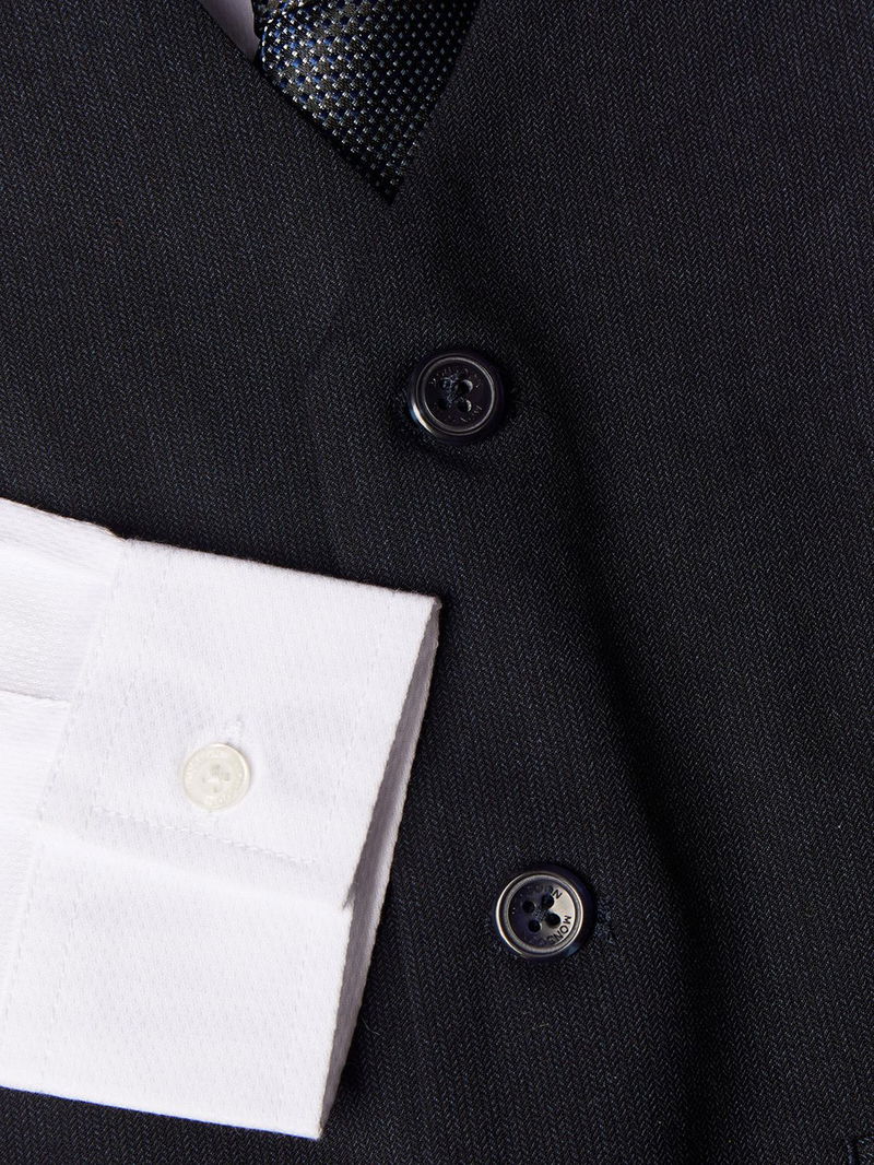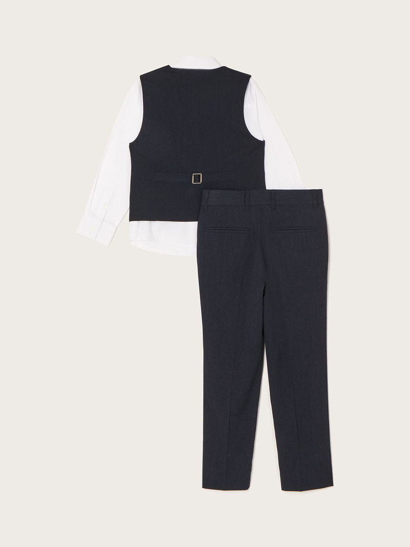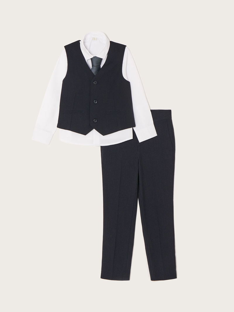 A convenient choice when preparing for weddings and other special occasions, this luxurious four-piece set will save you the trouble of having to buy an outfit separately. Included is a light cotton shirt with a point collar and button placket, as well as a pair of smart, tailored trousers and a tie to match. The star of the set is the ultra-smart waistcoat, complete with a triple-button fastening and an adjustable strap on the reverse.