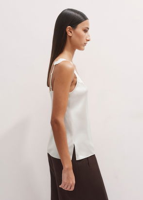 Description: Blue skies are calling. Perfect for the warmer days ahead, this cami top is decorated with floral lace straps and pintuck pleats that offer a floaty, flouncy hem. Finished with beaded cords at the v-neckline. Materials: 100% cotton Product Code: 113844248
