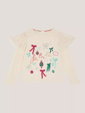 Dressing like a winter wonderland, this long sleeve top is decorated with sequin frills and a sparkly Christmas tree design on the front.