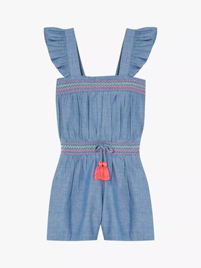 One for the summer, perfect for having endless fun in the sun. This cotton playsuit is designed in a denim-look chambray fabric and patterned with decorative broderie details. Just add SPF and sandals.