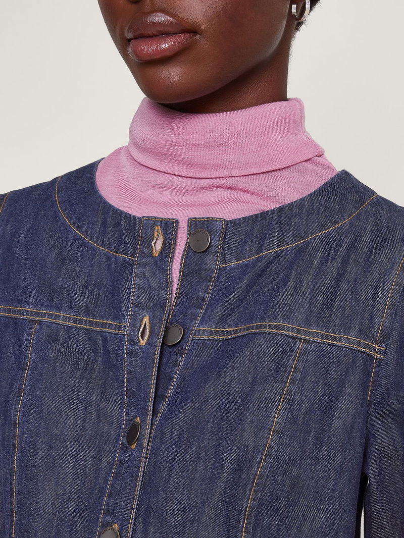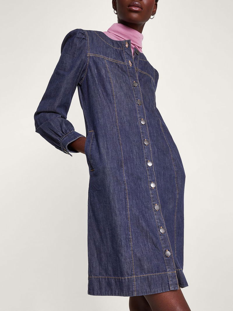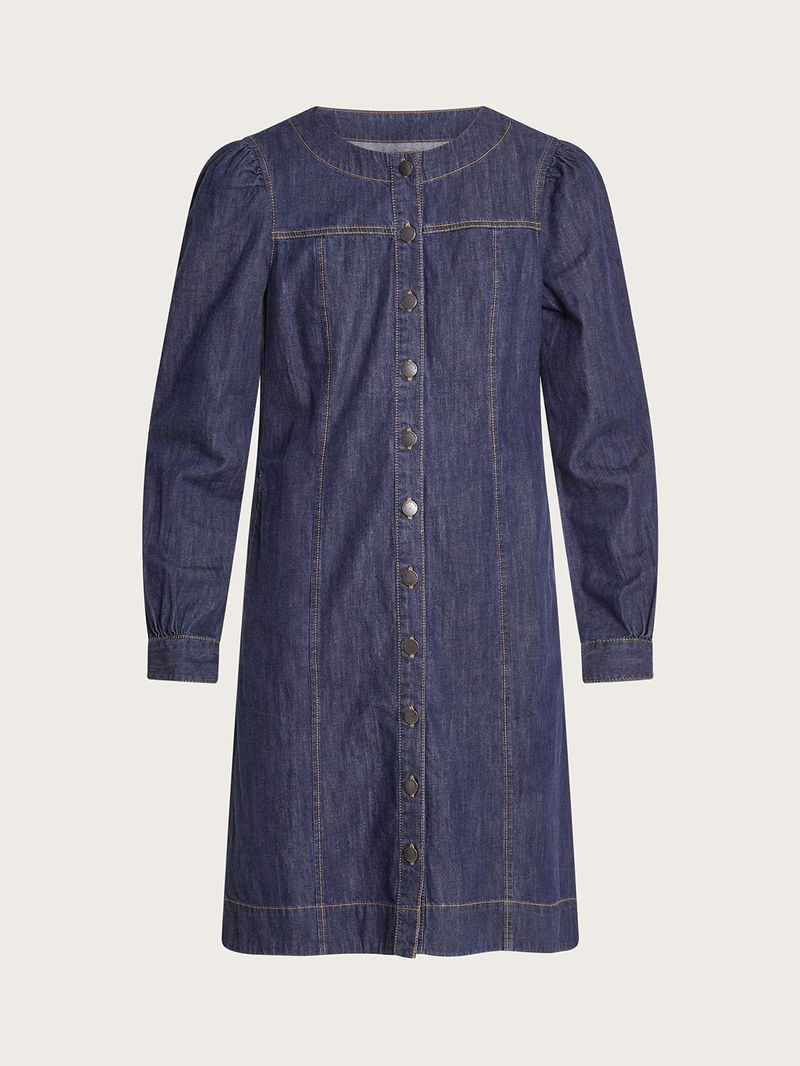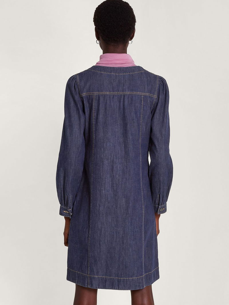 In an A-line shirt style that you will wear again and again, this mini dress by Monsoon complements bold accessories with its plain canvas. With a round neckline and long sleeves, it is made from denim for everyday wear and is a care-free option for daytime dressing.