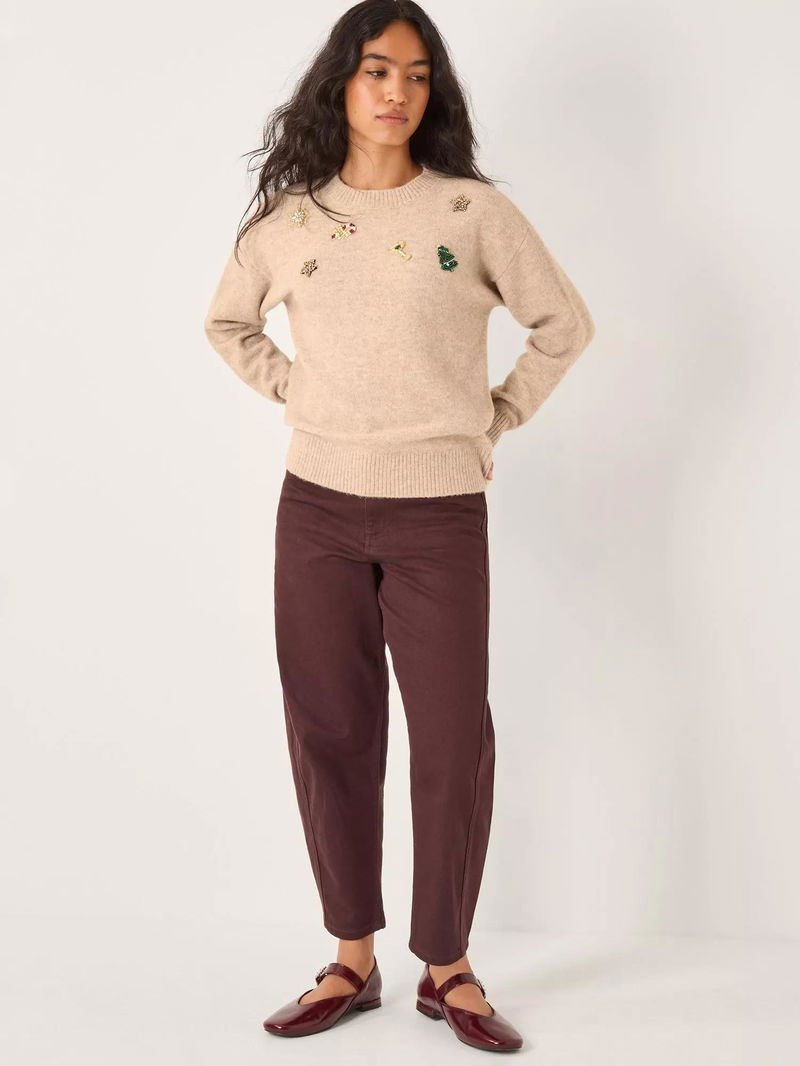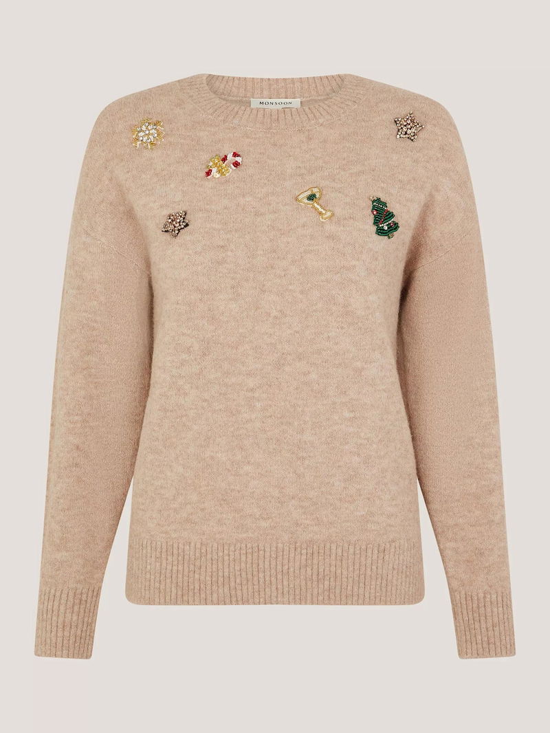 Edie Embellished Christmas Jumper, Camel