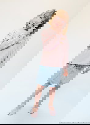 A style they can wear all year round, this denim skirt features a front button and zip fastening with two friendly tulips embroidered on the front patch pockets.