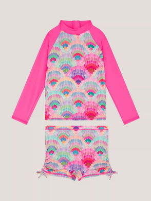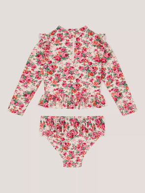 This long-sleeve swimsuit from Monsoon is finished with florals and ruffles, the stretchy swim-ready fabric has a UPF rating of 50+ to help keep them protected from the sun.