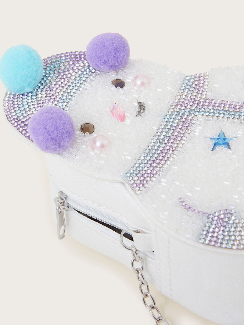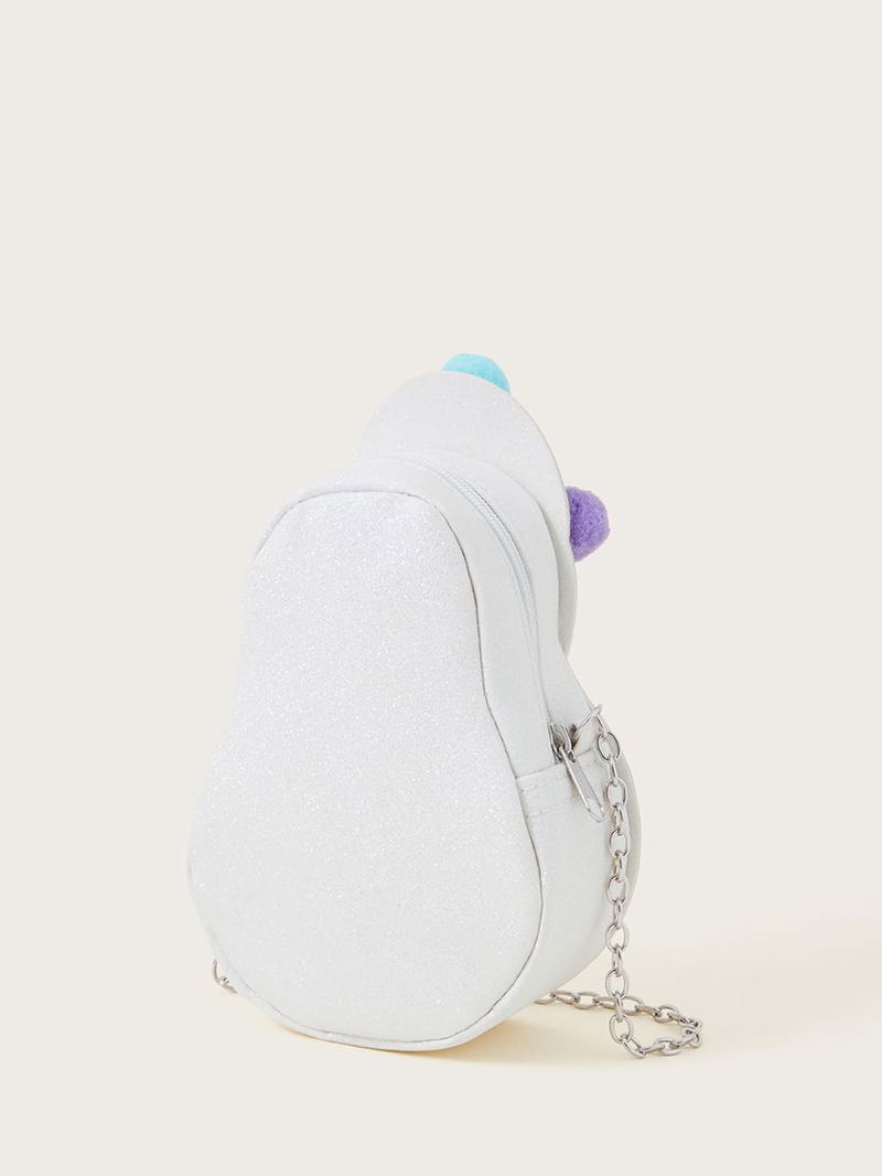 Frosty, designed with a sparkly finish, is here to keep all their bits 'n' bobs safe. Finished with a zip fastening and silver coloured chain strap.