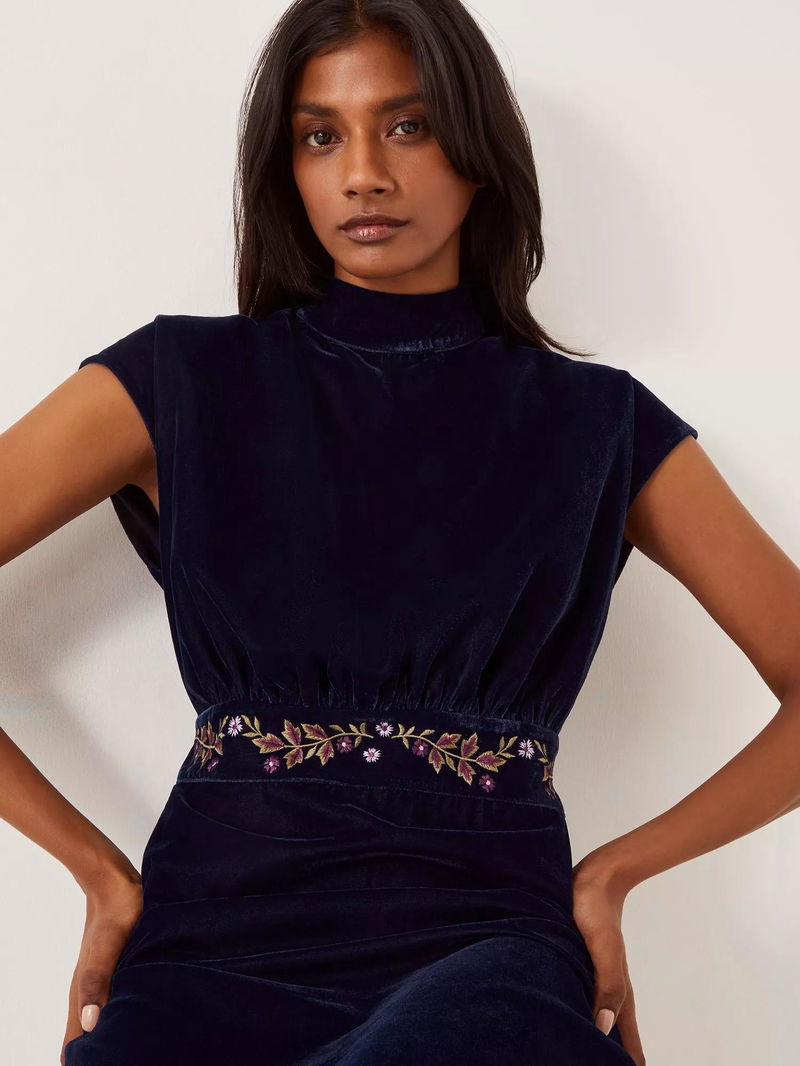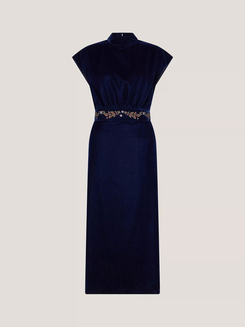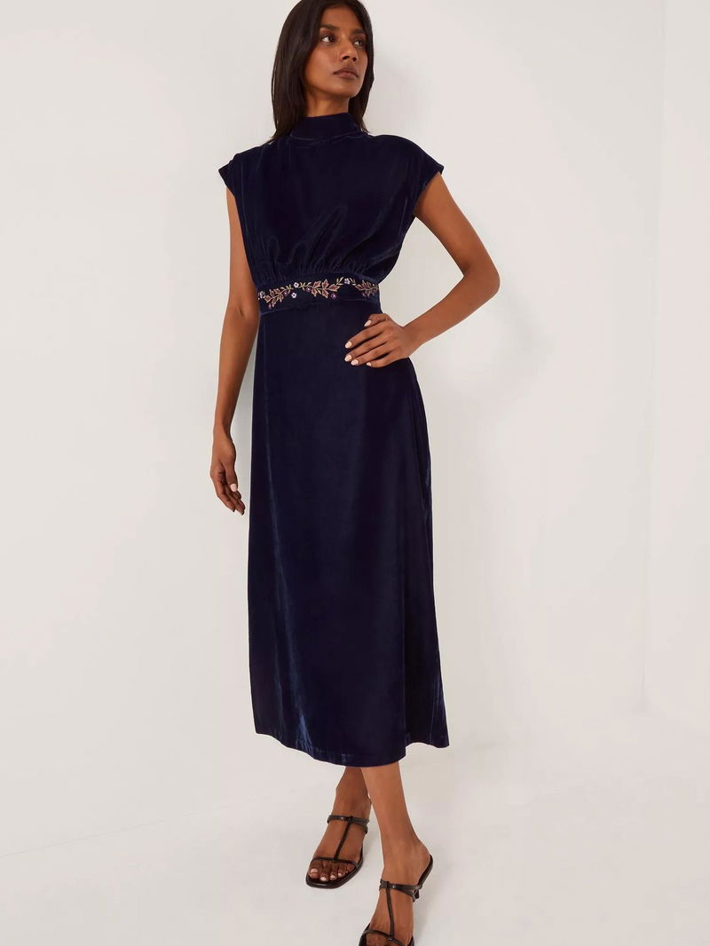 Grace Velvet Cap Sleeve Midi Dress, Navy