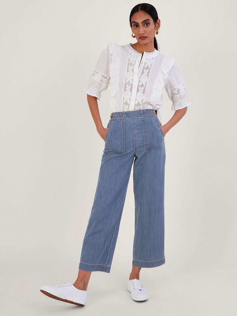 Cut to this season's much-loved wide leg, these mid rise jeans from Monsoon make for a timeless choice in cotton-denim and are cropped to showcase your footwear. They're versatile enough to be dressed down for a casual day or dressed up with stilettos for an after-work dinner.
