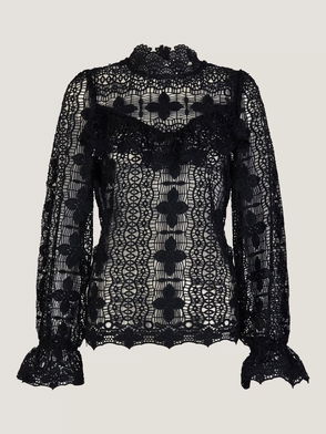Delicate details, effortless charm. This breezy black blouse is all about the finer things intricate embroidery, scalloped trims, and airy ladder lace. The tie-front adds a relaxed touch, making it perfect for warm days and golden-hour strolls. Pair it up with the matching Hayley Embroidered Trousers for a cooler-than-aircon co-ord.
