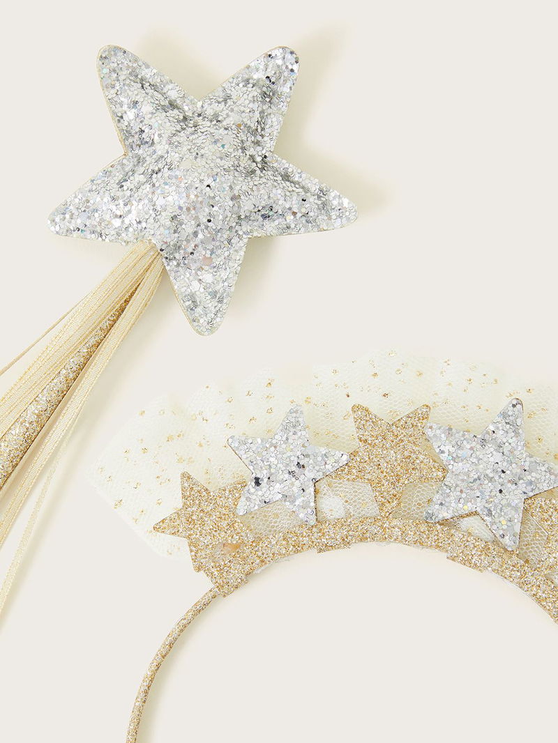 With a swish, and a flick! Twinkling with stars straight out of the midnight sky, this set features a comfortably fitting headband that they can wear all day long. The wand flutters with ribbon detailing, just give it a wave and watch the magic unfold!