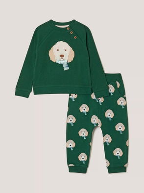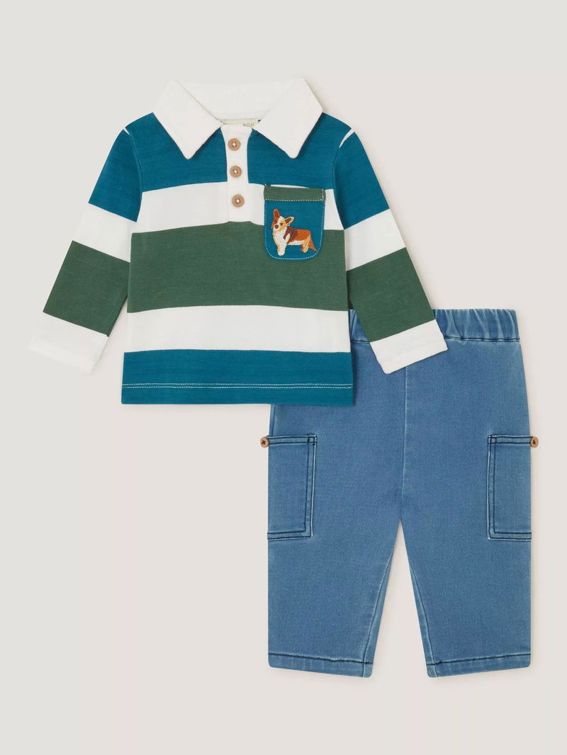 Kids' Baby Digby Polo Top And Joggers Set, Blue/Multi