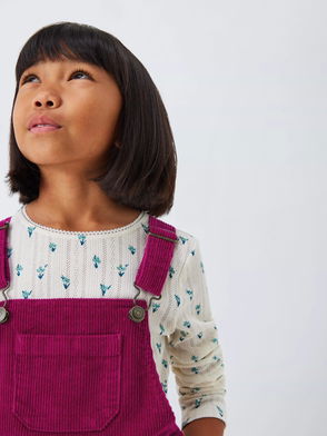 Kids' Corduroy Embroidered Pinafore Dress, Pink