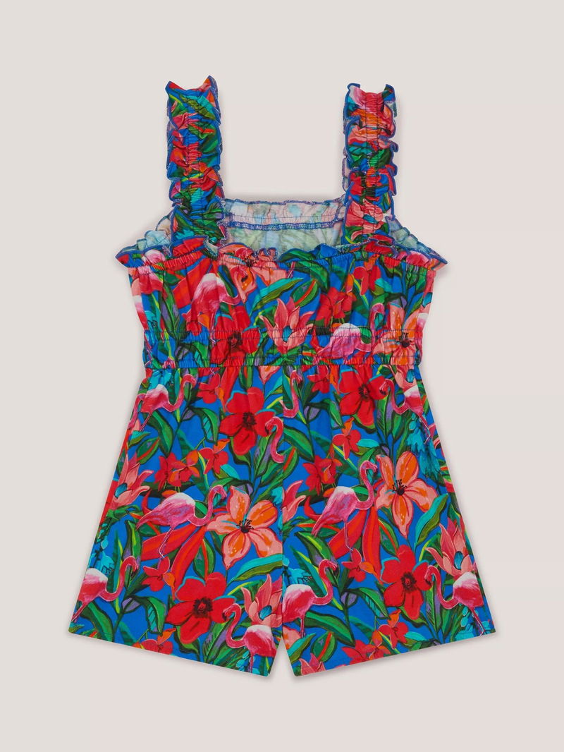Kids' Cotton Tropical Print Playsuit, Blue/Multi