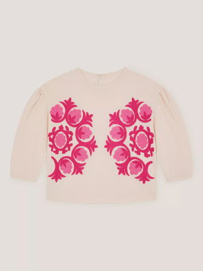 Feeling groovy? Stitched with all the flower power vibes from the 70s, this top features 3/4 sleeves whilst the hem is decorated with crochet flowers in pink, red and purple. Matching shorts available.