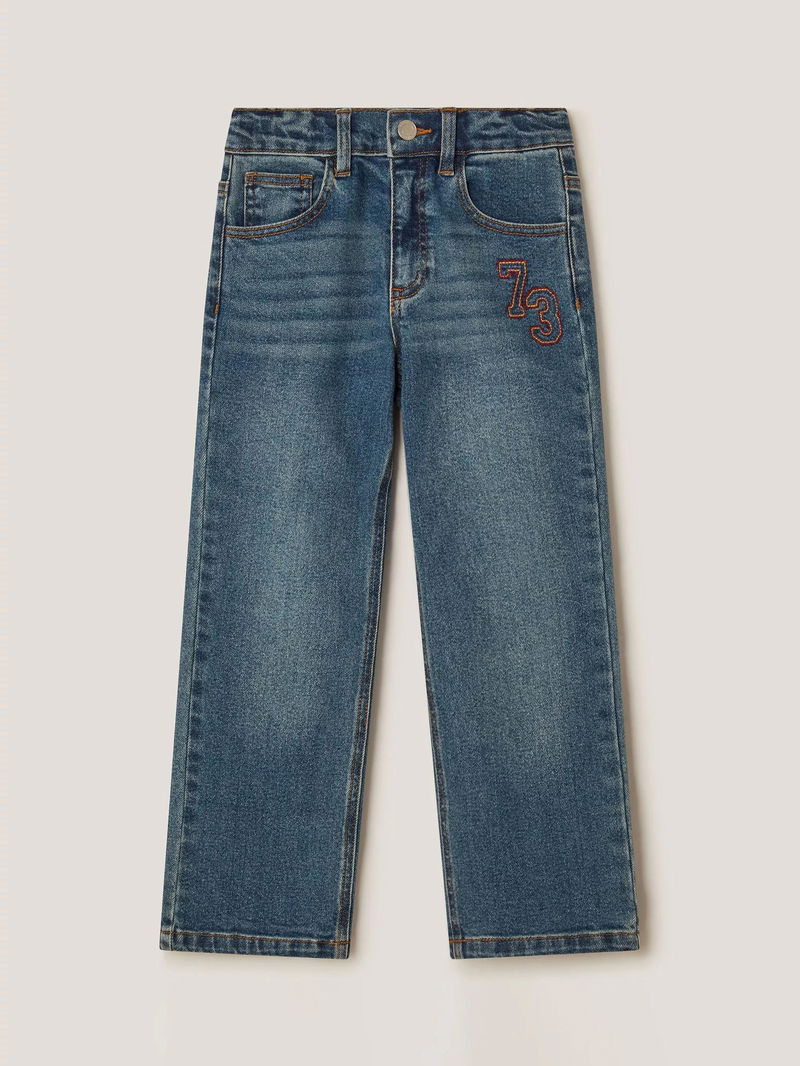 Kids' Denim Logo Straight Jeans, Mid Blue