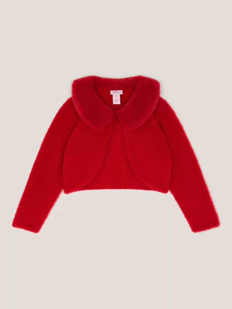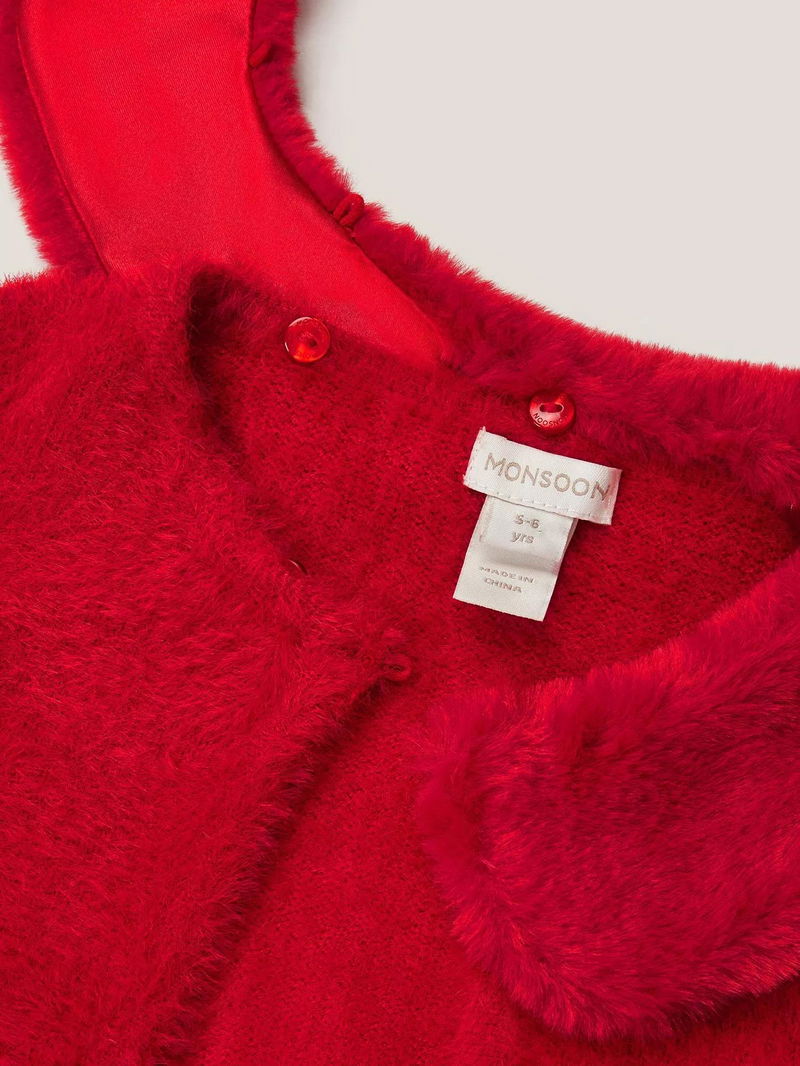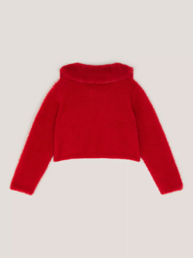 Kids' Detachable Collar Fuzzy Cardigan, Red