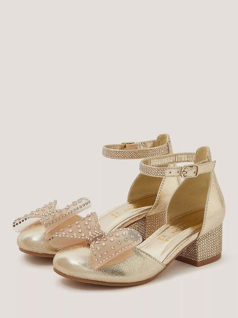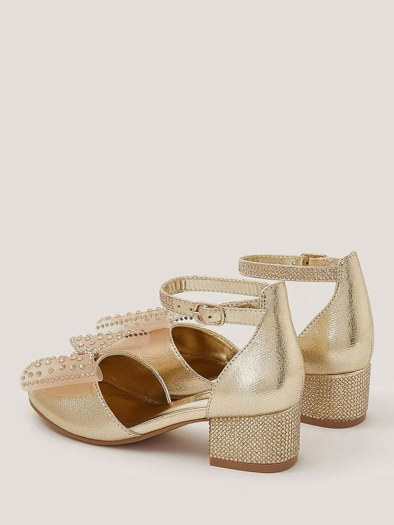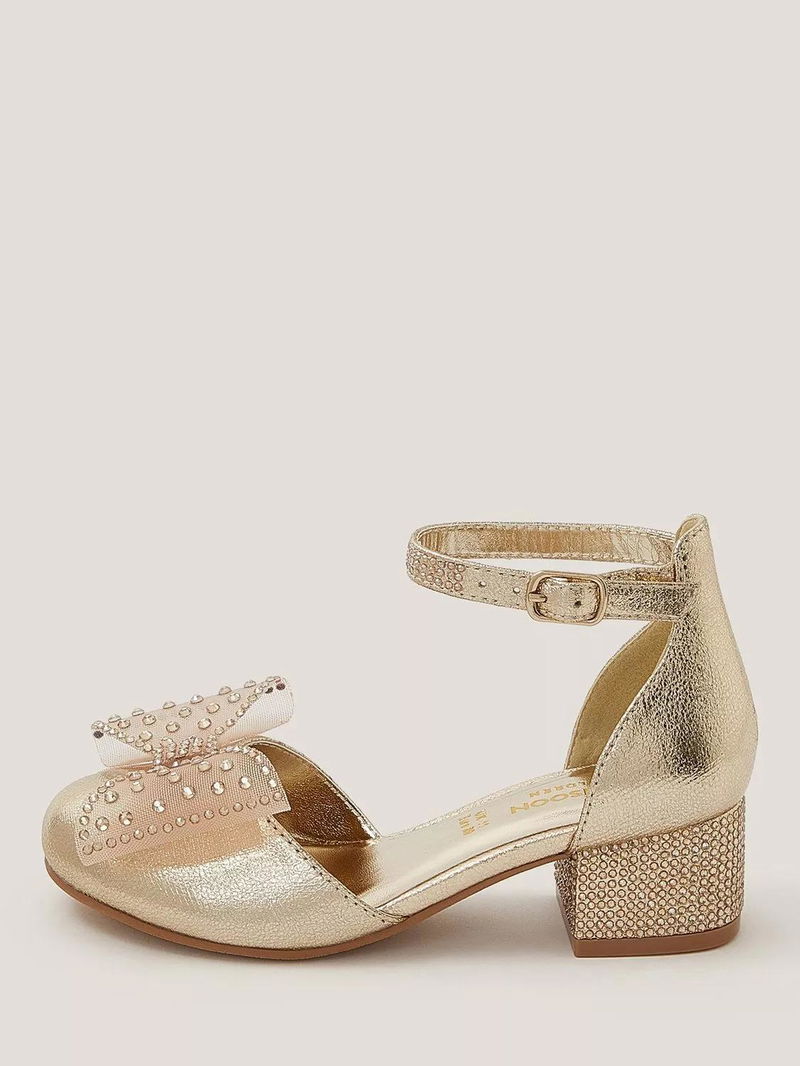 Kids' Diamanté Bow Metallic Two-Part Heels, Gold