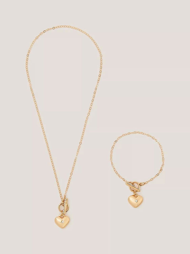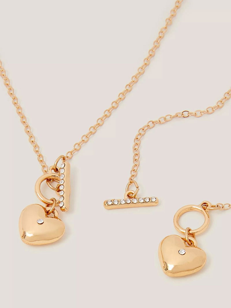 Designed with a heart locket and T-bar pendant, this rose gold set features a necklace and bracelet that they won't want to take off. Featuring shiny diamanté's, it adds a touch of sparkle to their weekend outfits. Two pieces included.