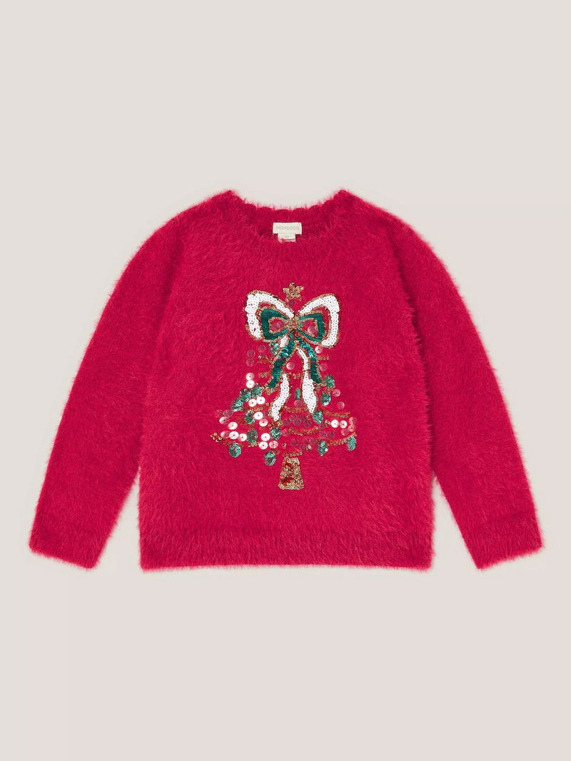 Kids' Embellished Fuzzy Christmas Jumper, Red