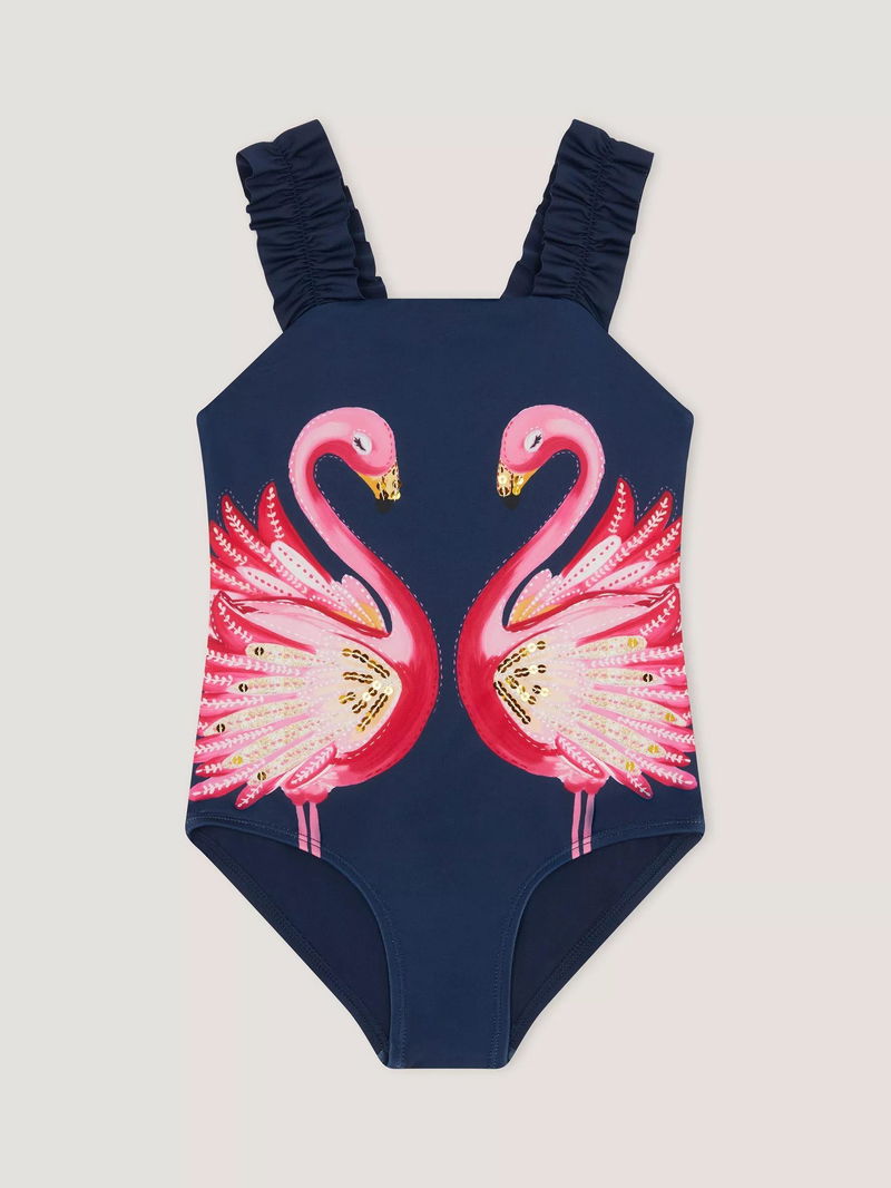 Kids' Flamingo Swimsuit, Navy
