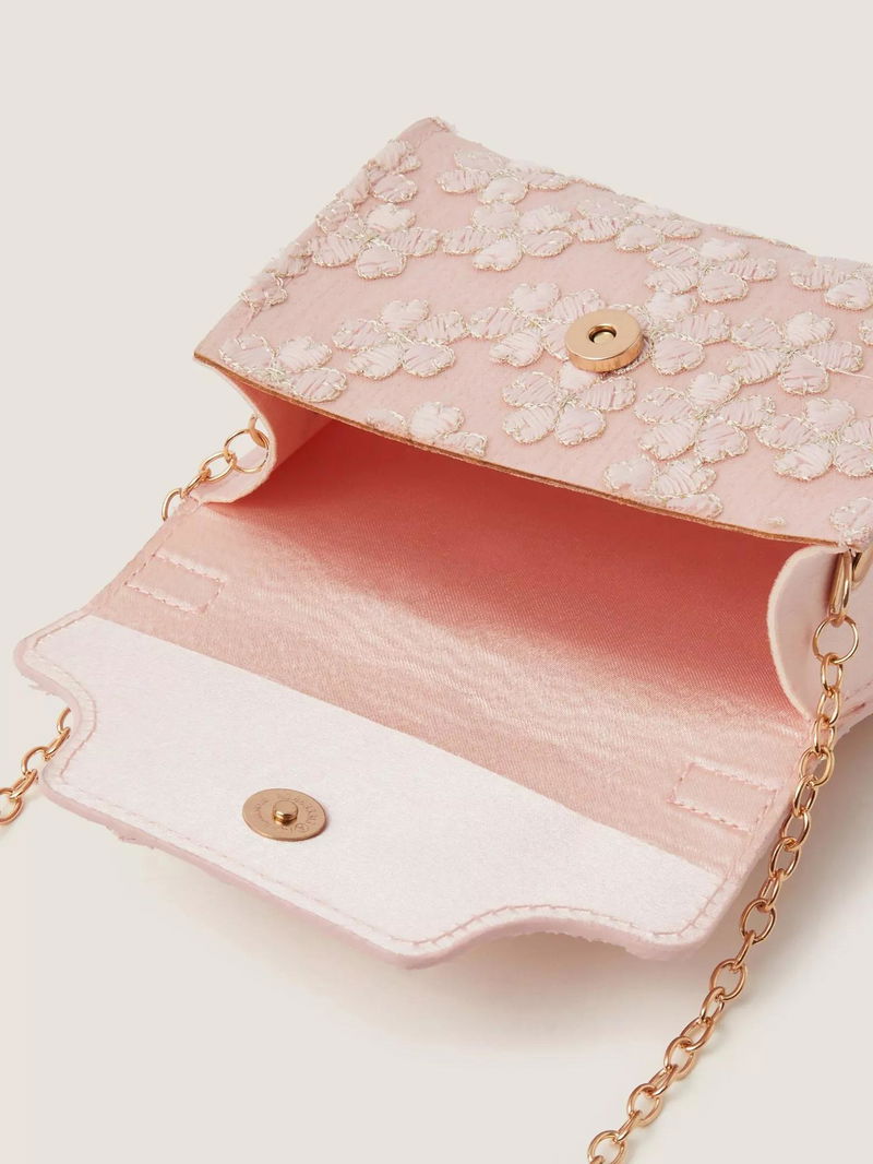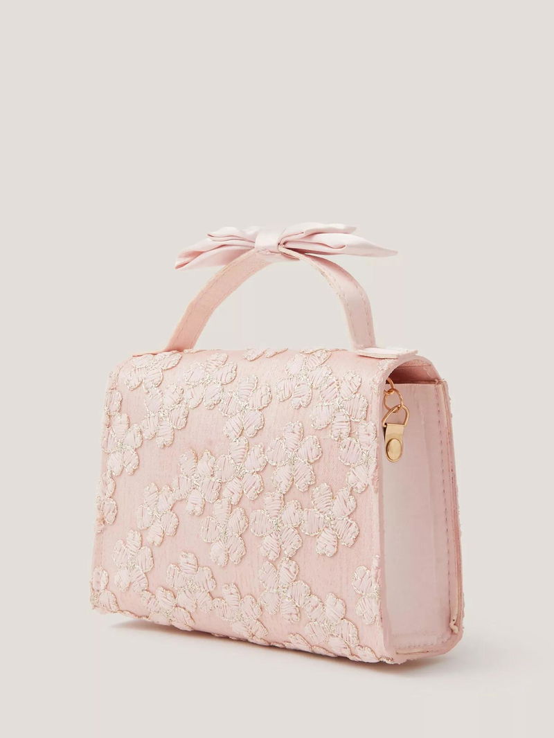 Kids' Floral Embroidered Bow Bag, Pale Pink