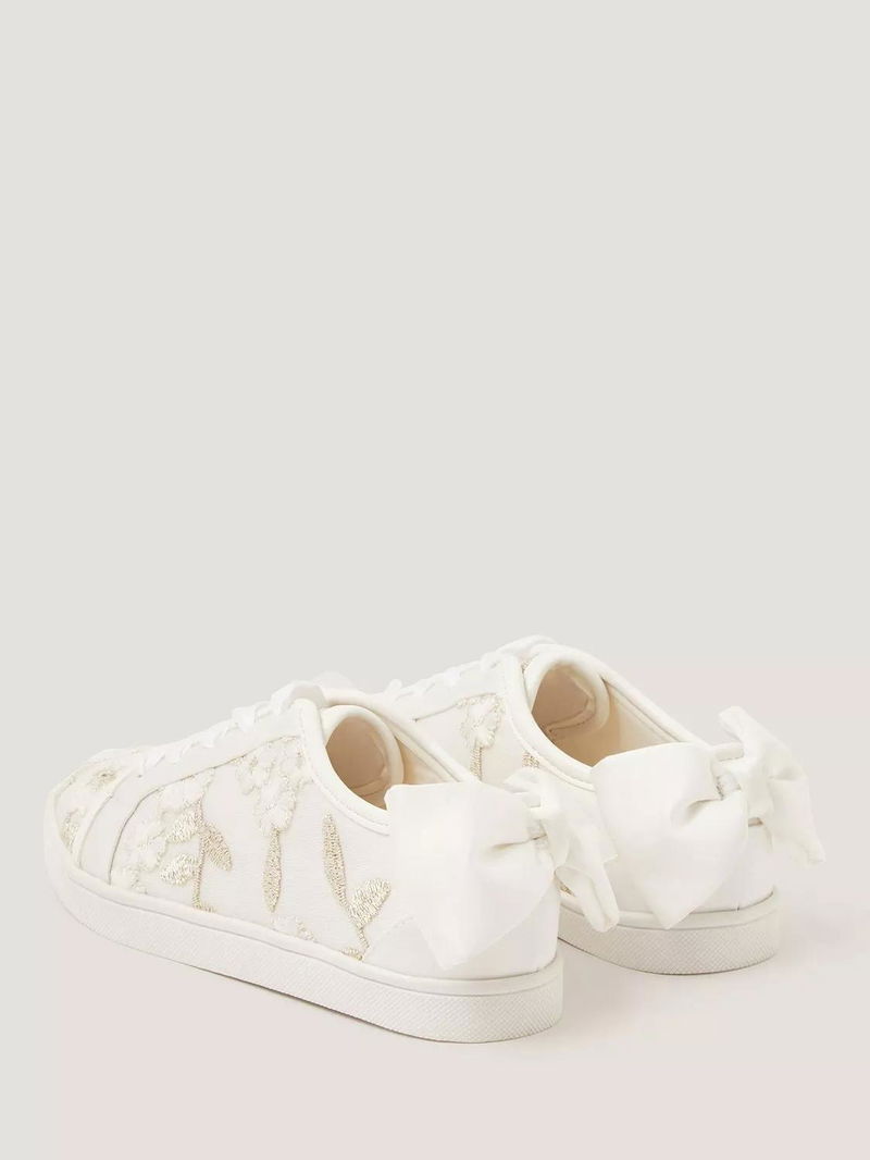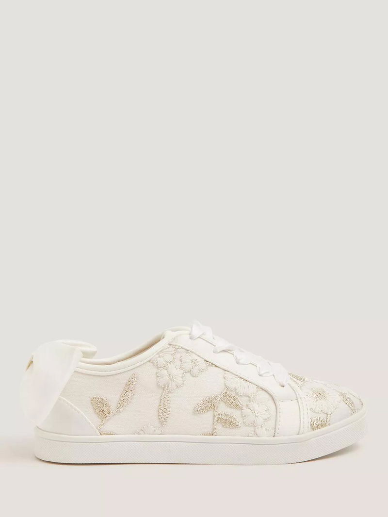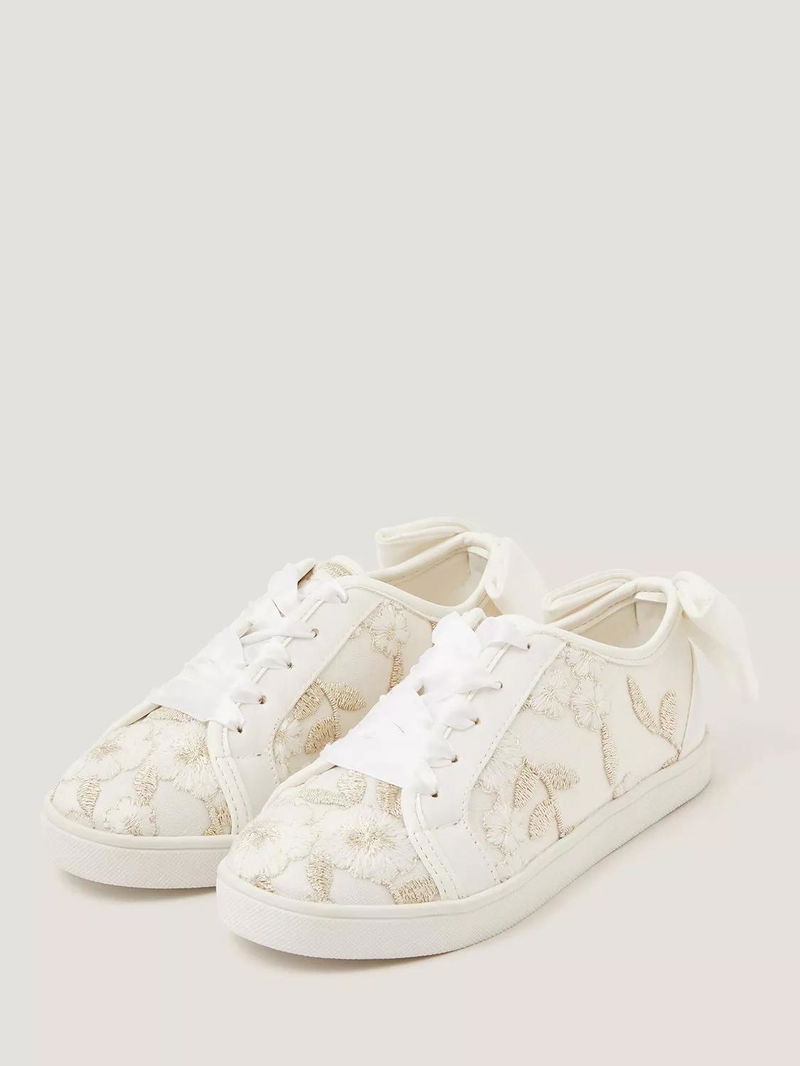Kids' Floral Embroidered Trainers, Ivory
