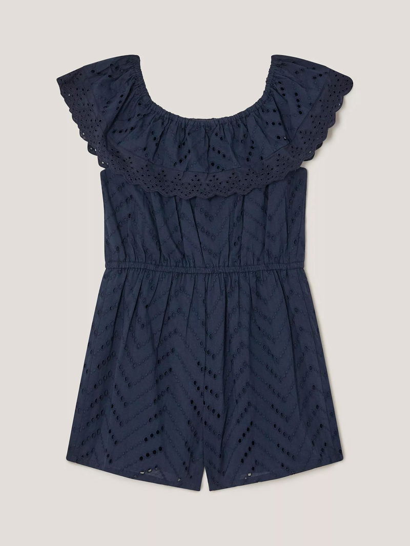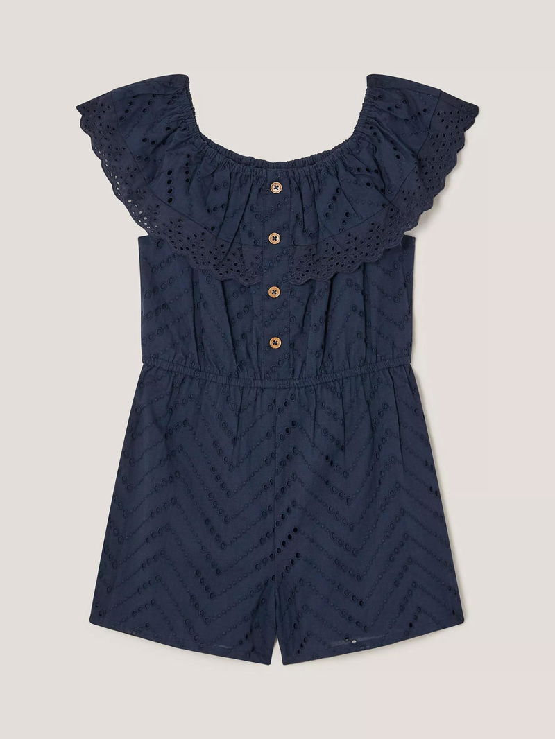 Kids' Frilly Broderie Playsuit, Navy