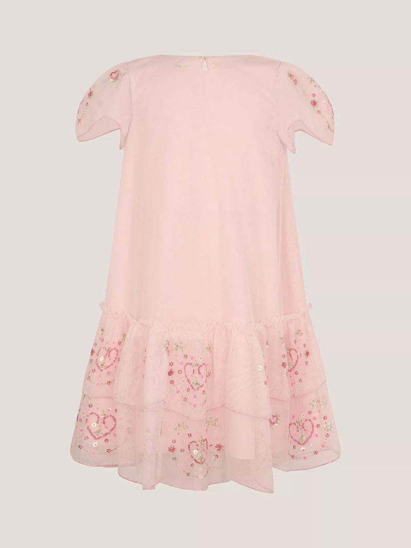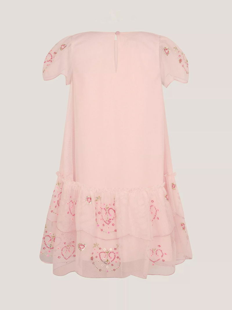 Kids' Heart Embellished Mesh Party Dress, Pink