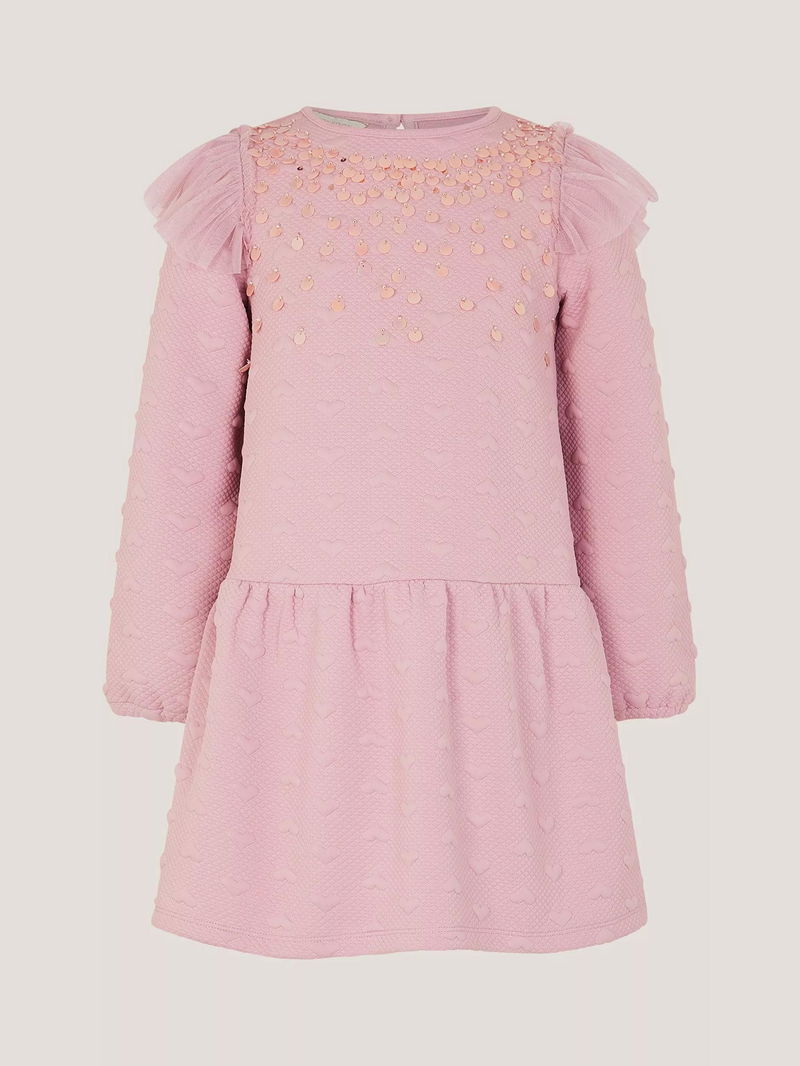 Kids' Heart Embellished Sweatshirt Dress, Pink