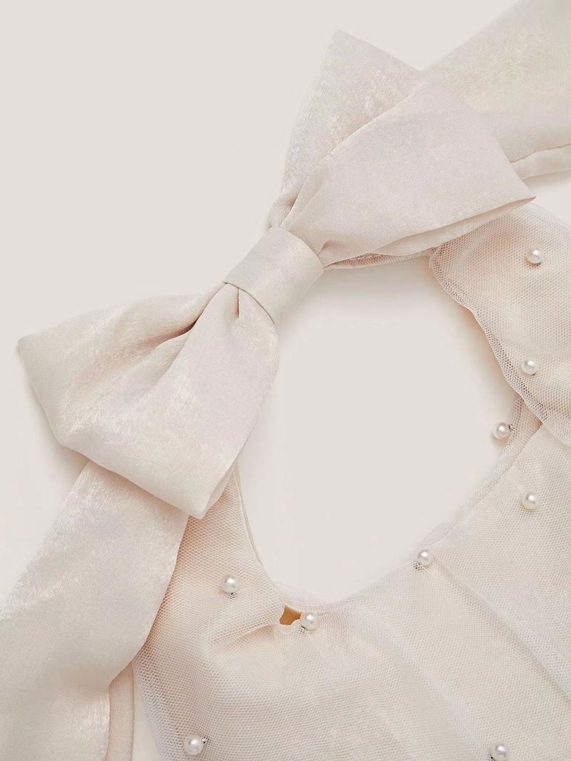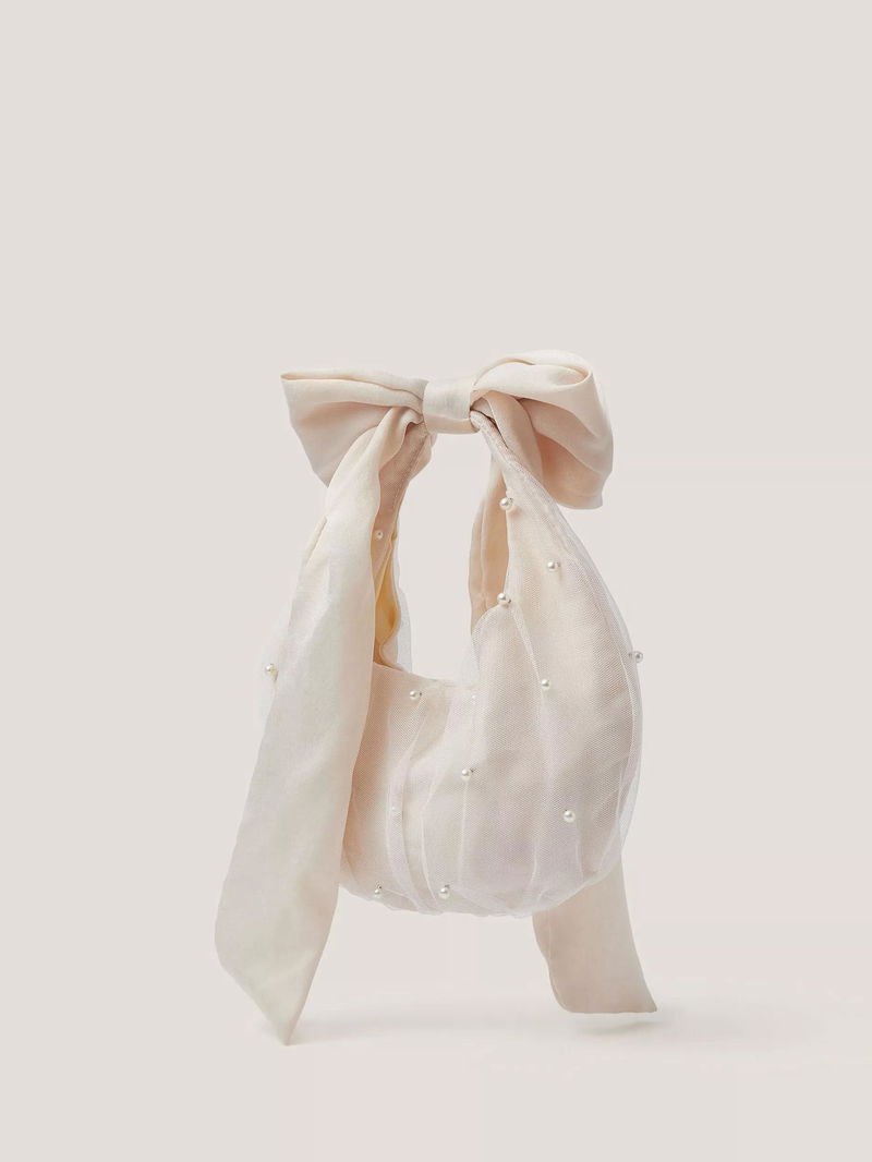 Kids' Pearl Bow Tulle Bag, Warm Ivory