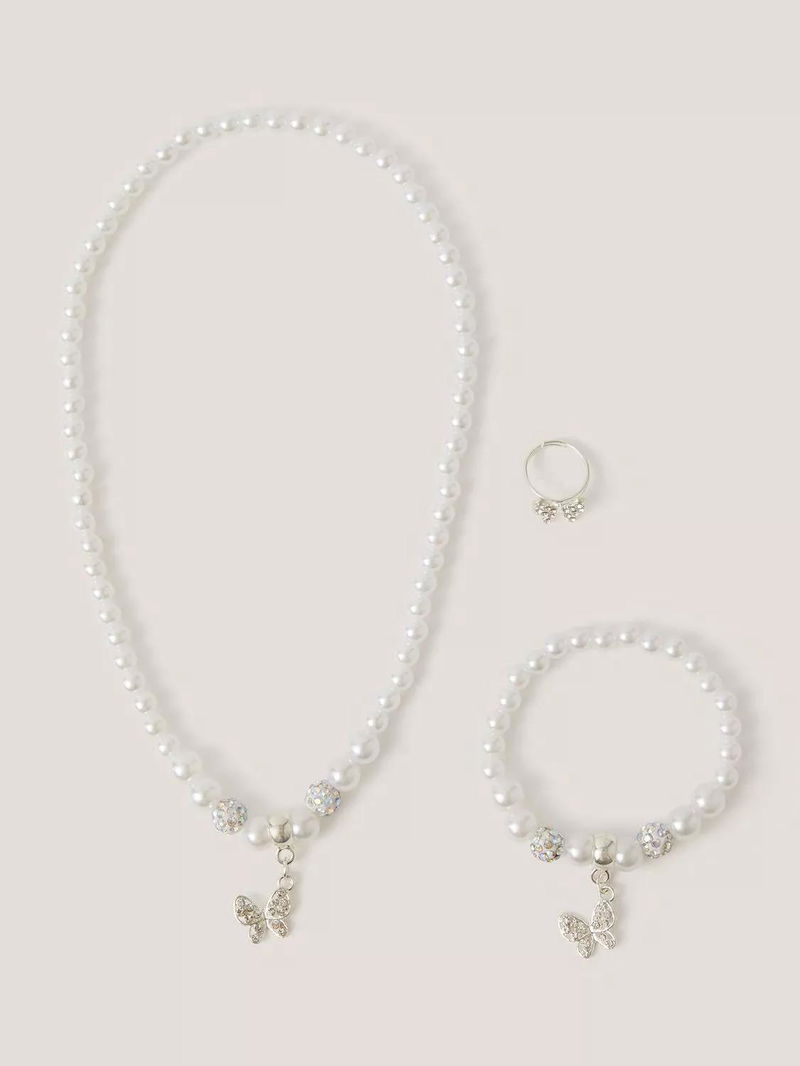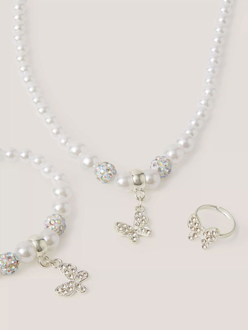 Kids' Pearly Butterfly Bridesmaid Jewellery Set, Ivory
