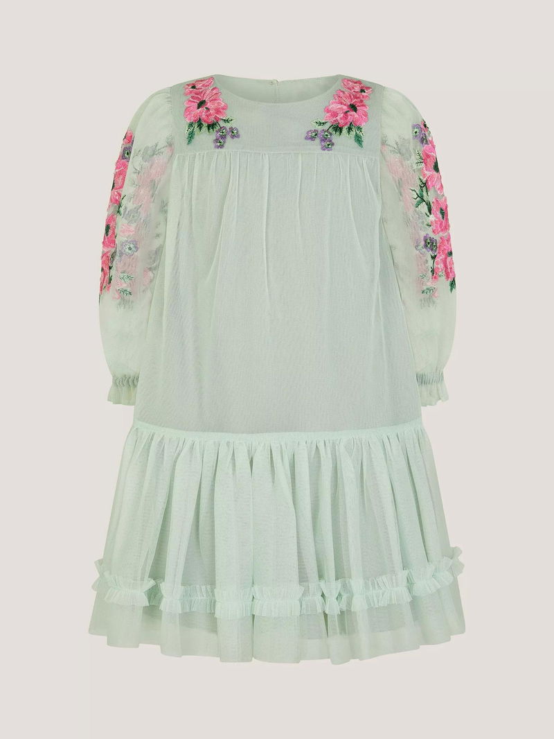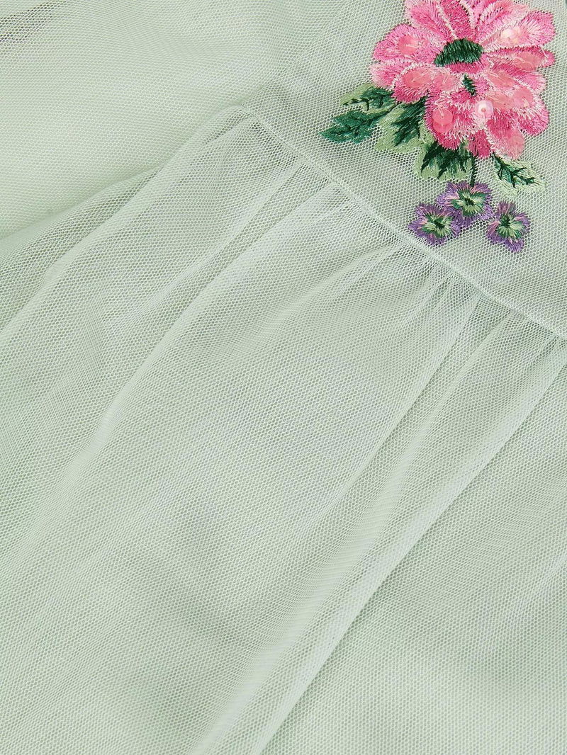 Kids' Peony Embroidered Tulle Party Dress, Sage