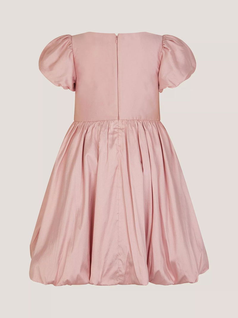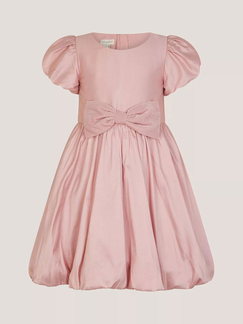 Kids' Puff Sleeve Velvet Bow Party Dress, Dusky Pink