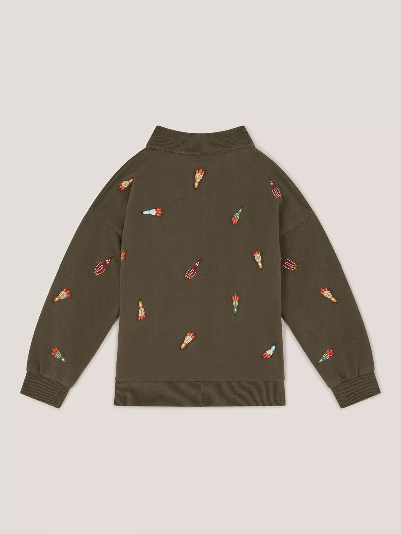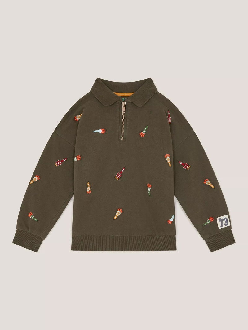 Kids' Spaceship Embroidered Polo Sweatshirt, Khaki