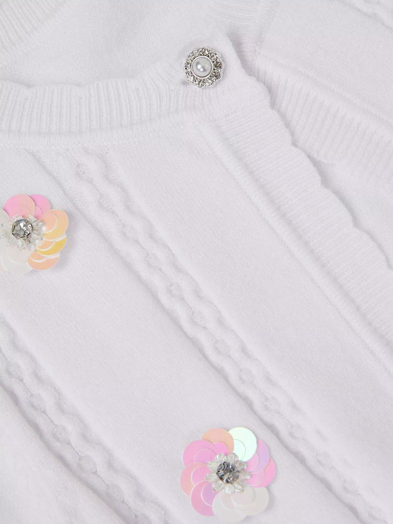 Kids' Sparkle Cable Knit Cardigan, Ivory