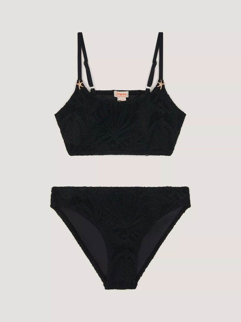 Kids' Textured Starfish Bikini Set, Black