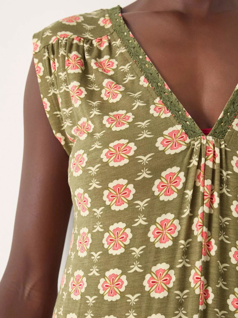 Maddie Floral Sleeveless Jumpsuit, Khaki