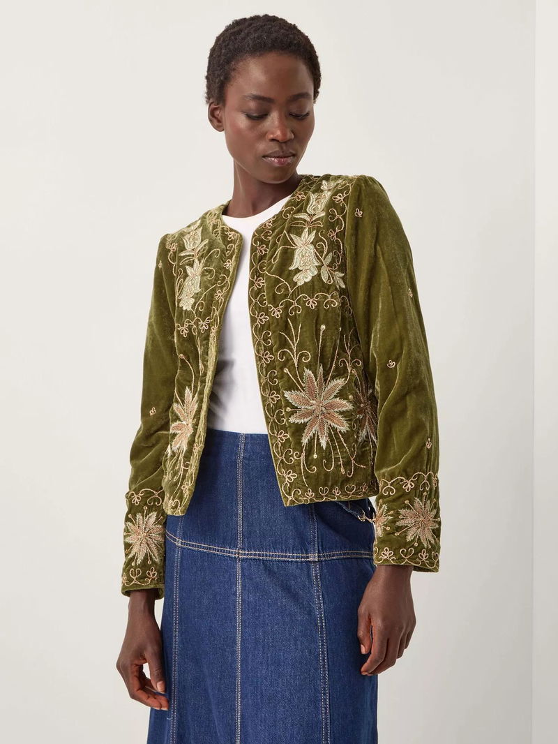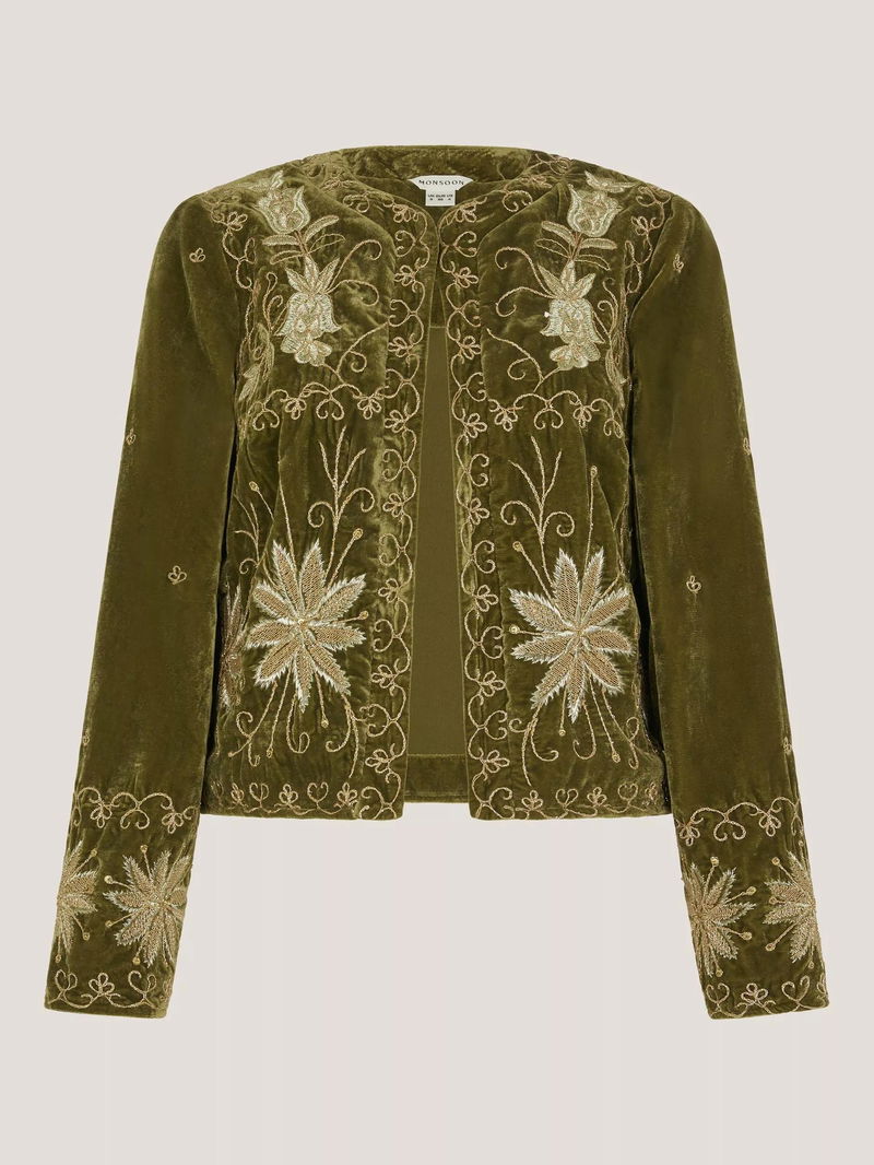 Magda Floral Velvet Jacket, Khaki