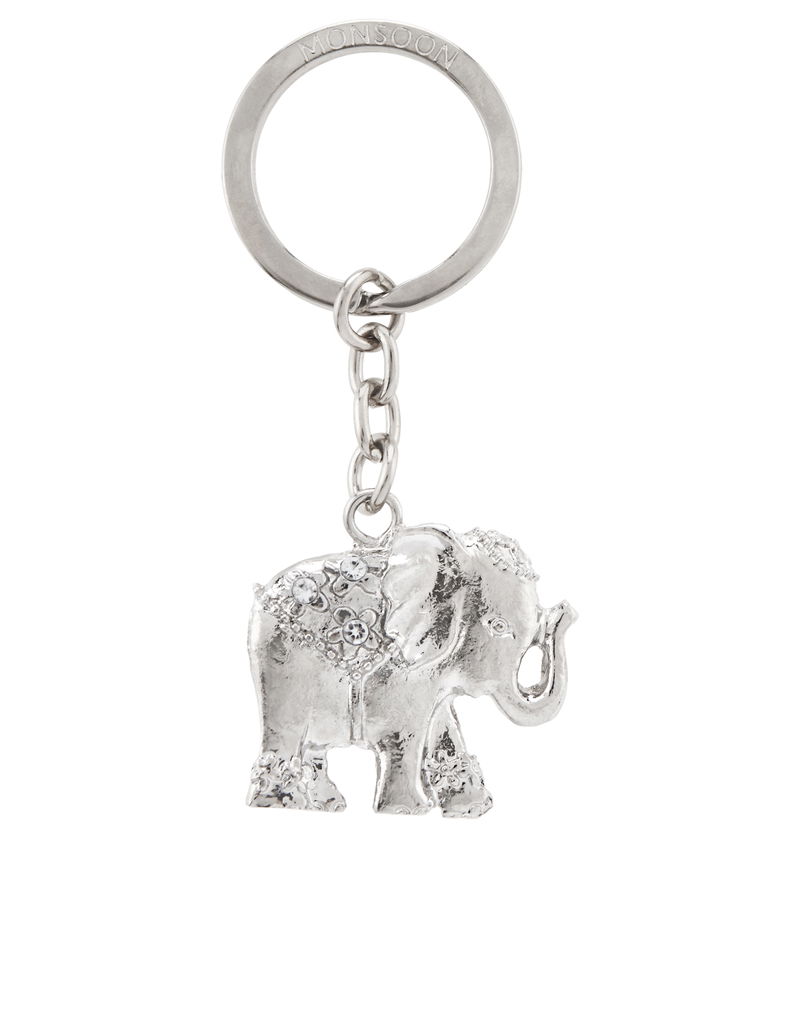 Fashioned with flower details and crystal gems, our silver-tone metal elephant keyring will add a stylish touch to your everyday essentials.