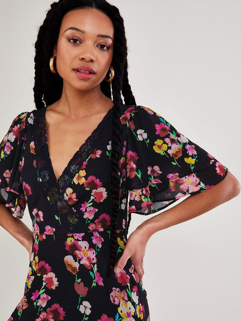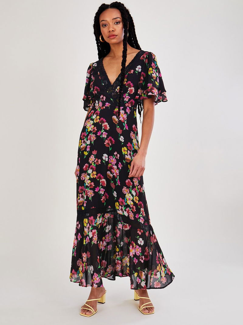 Flaring out at the hem for a feminine silhouette, this maxi dress by Monsoon is printed with pretty florals for added charm. Framed with a v-neckline and short sleeves, this piece is sure to dazzle on the big day.