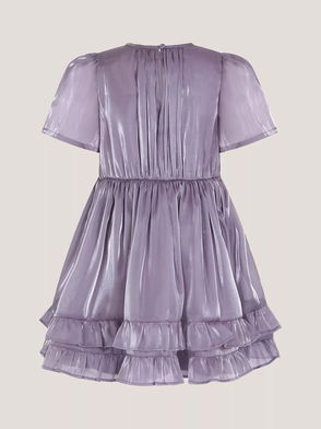 A beautiful choice for occasions, this sleeveless ruffled dress by Monsoon is designed with a dip hem and an oversized organza bow to the reverse.