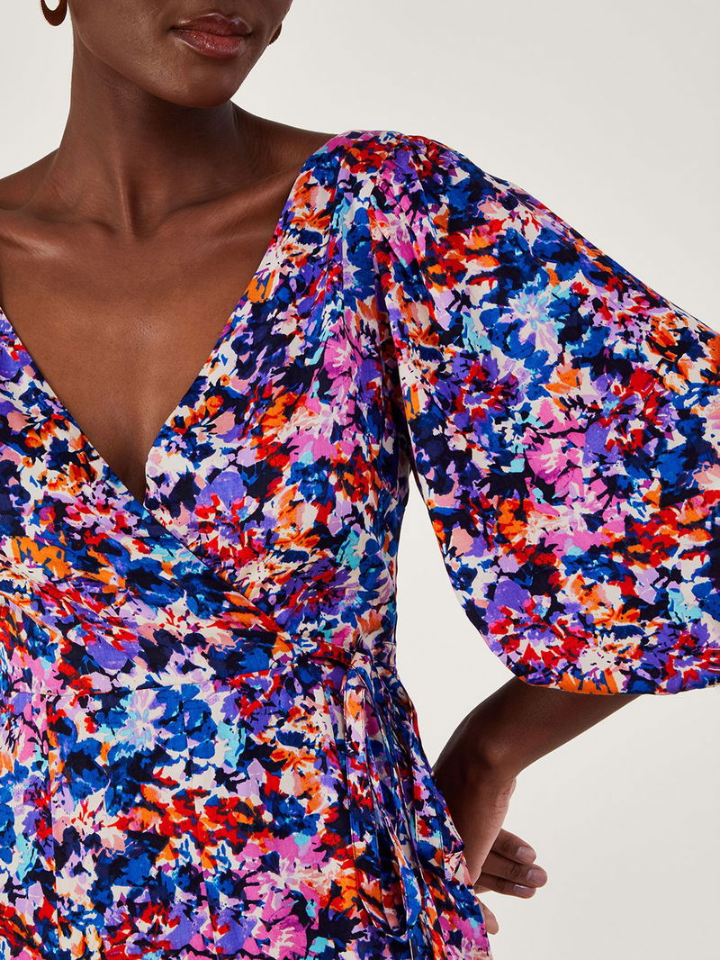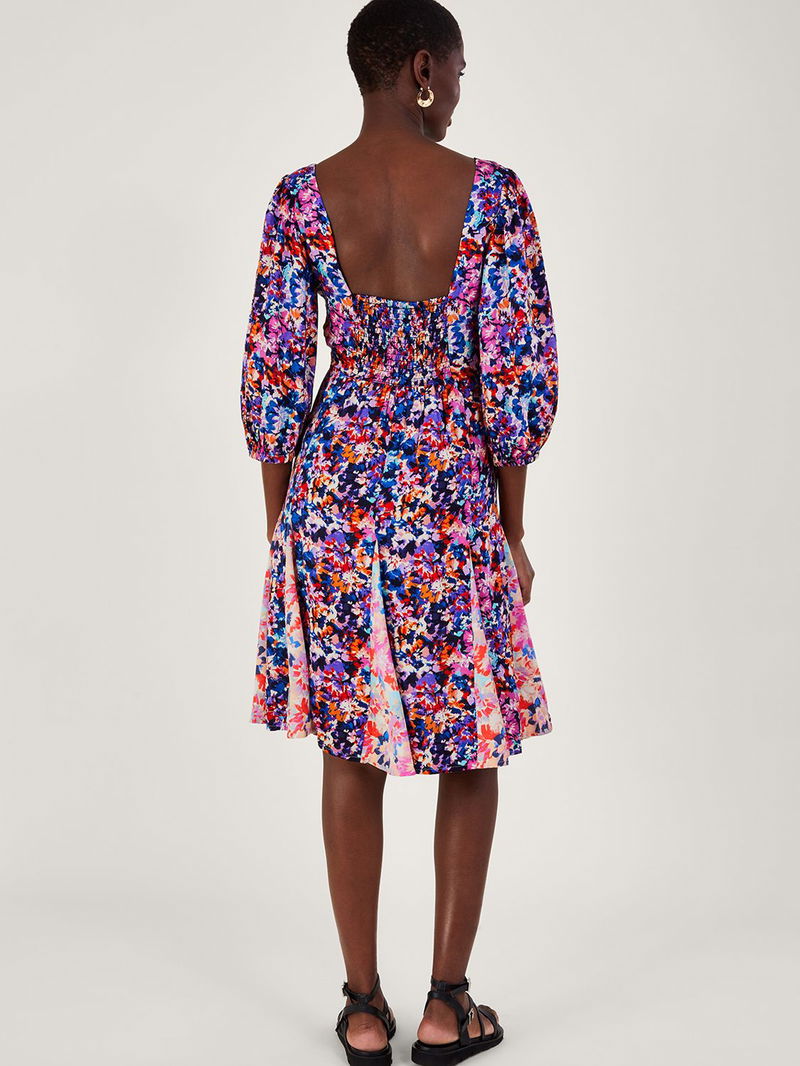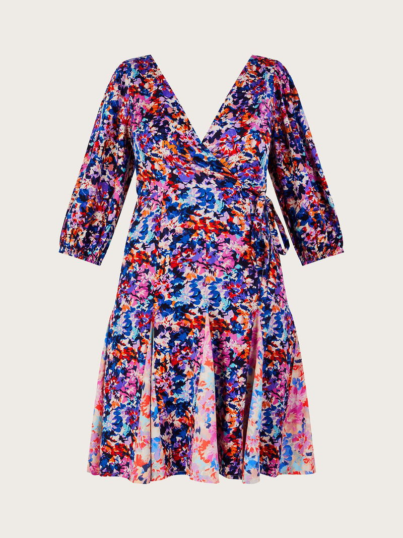 Extending to a flattering pleated skirt, this knee length dress from Monsoon is dreamt up from whisper-weight viscose. With a universally flattering v-neckline and three quarter length sleeves, this style is adorned with a blooming flower print.
