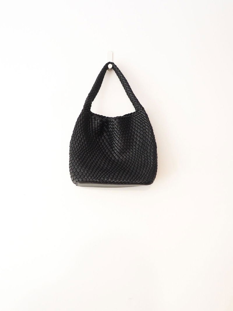 Full of swing. Braided in a square profile, this bag is a must-have for every day. Designed in soft faux leather with a woven finish, it features a sturdy shoulder strap and a magnetic button fastening.