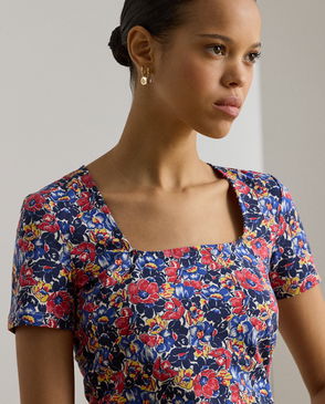 Rosalie Floral V-Neck Top Containing LENZING™ ECOVERO™ Viscose, Navy