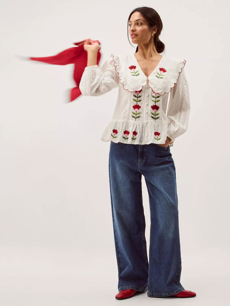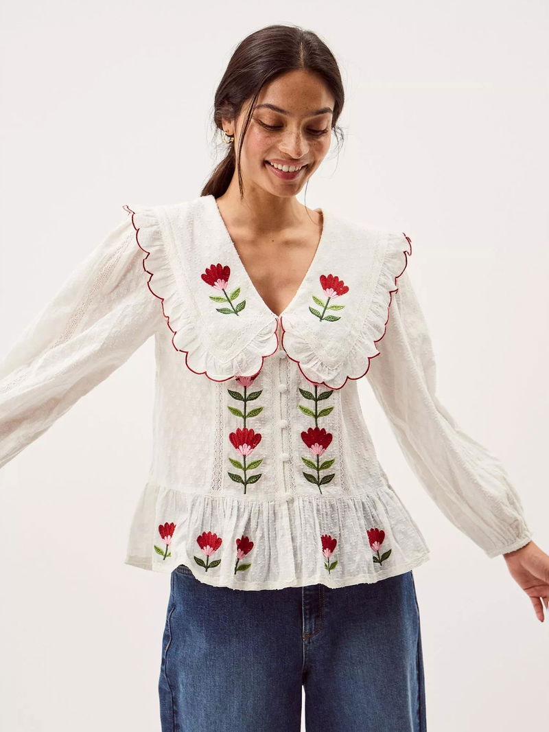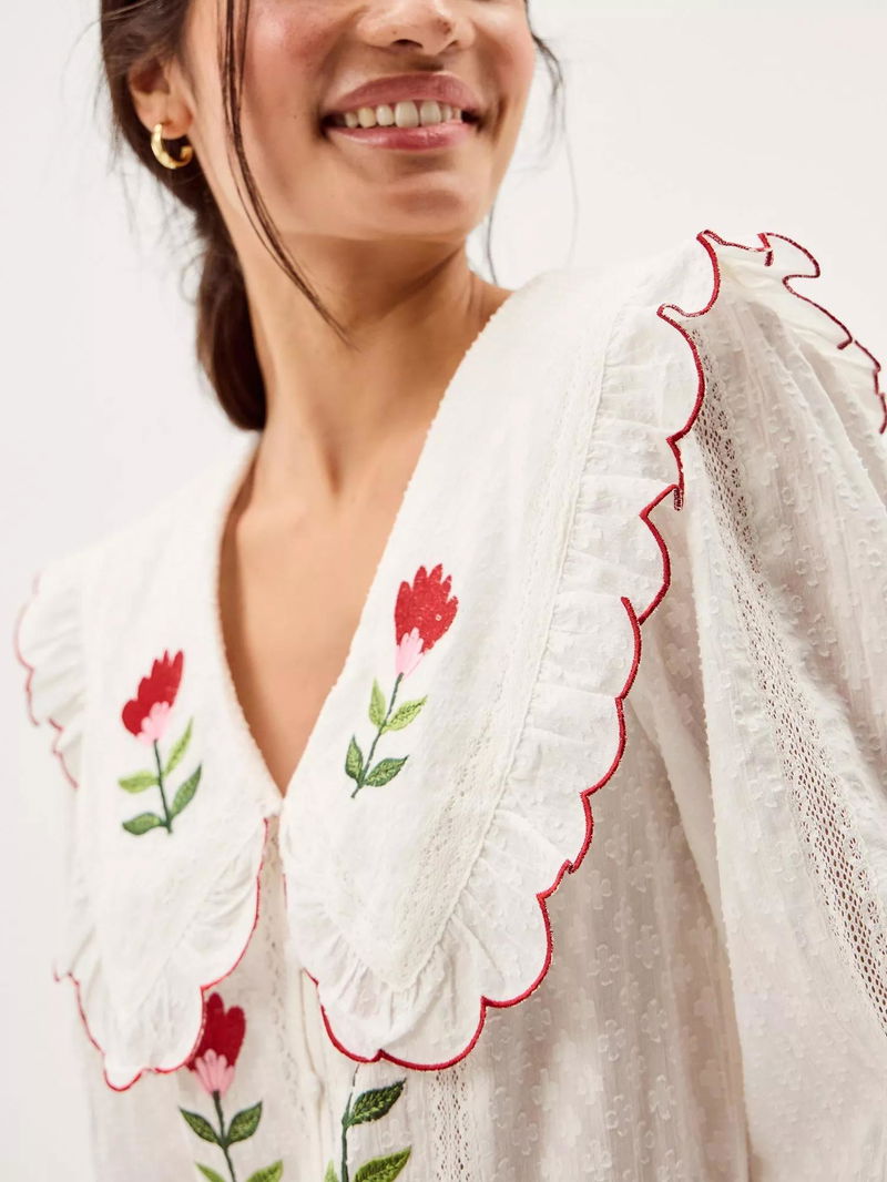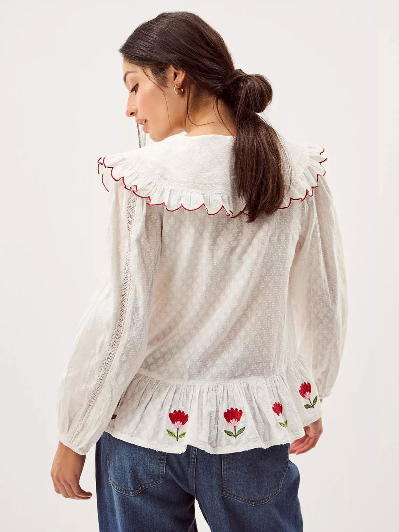 Talia Embroidered Tulip Top, White/Multi