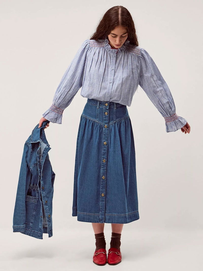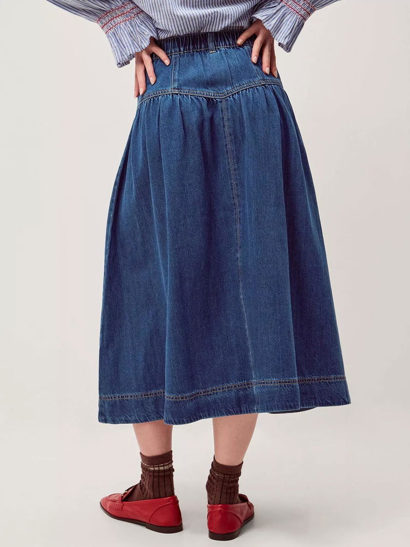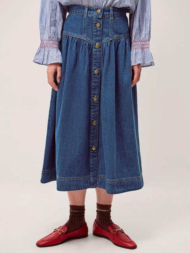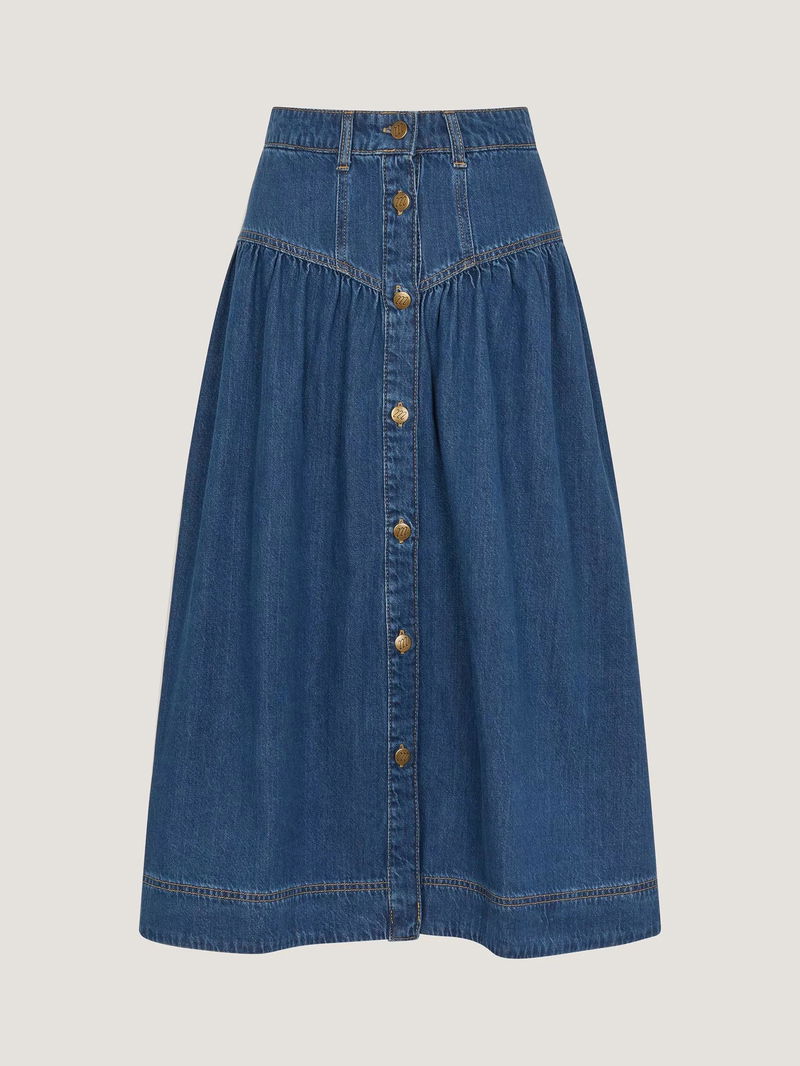 Tamsin Button Down Denim Skirt, Mid Authentic Blue