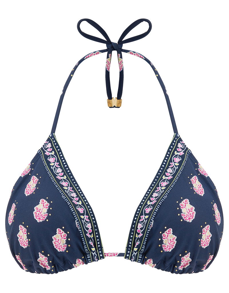 With gold foil details adding a hint of shimmer to this pretty motif print, the Thelma bikini top is a stylish choice for your glamorous getaway. In a classic triangle shape, it boasts padded cups and ties at the neck and back.