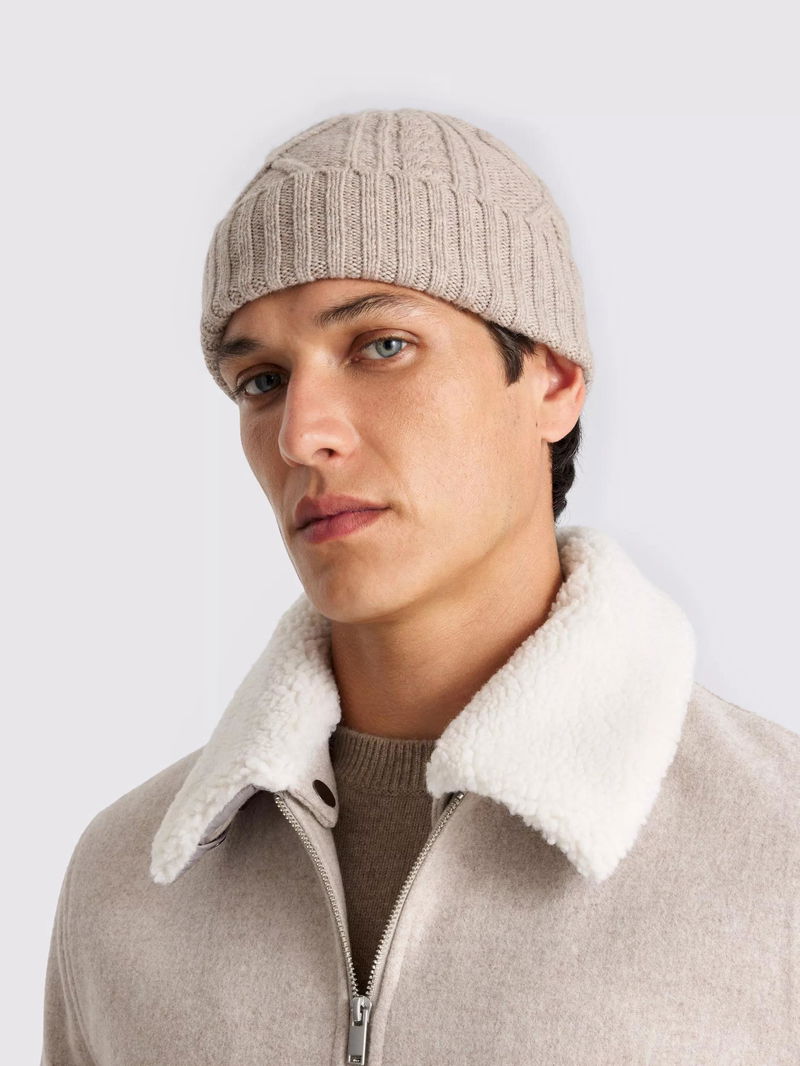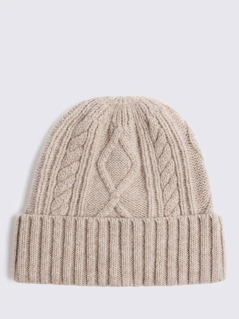 Cable Knit Wool Cashmere Blend Beanie, Beige